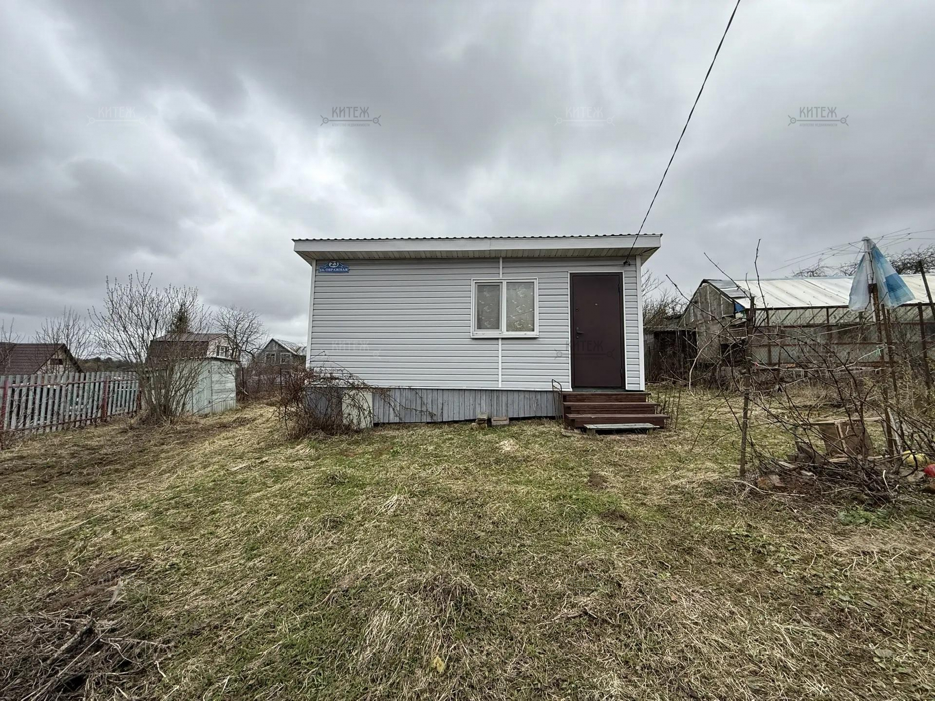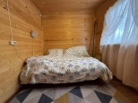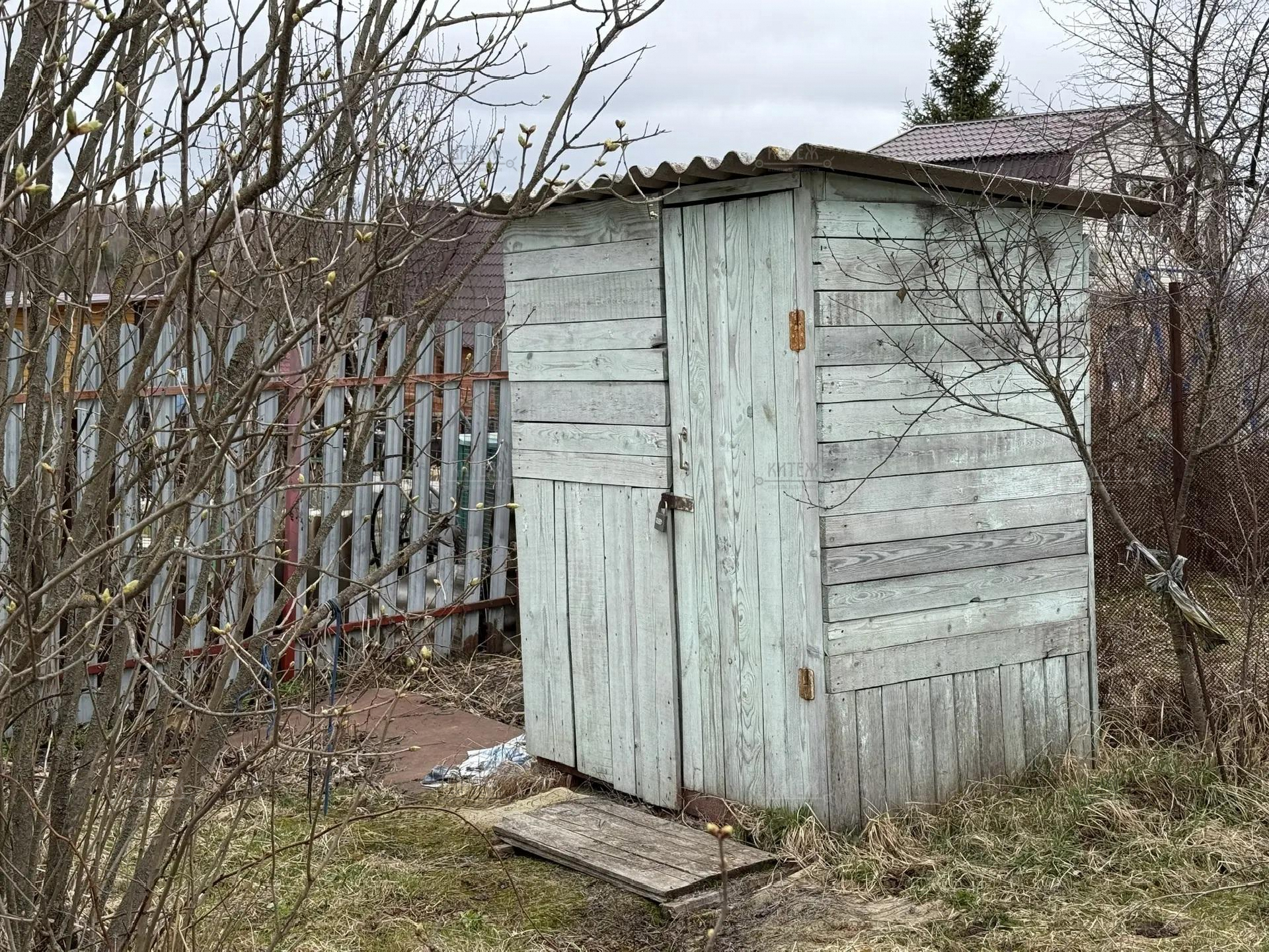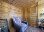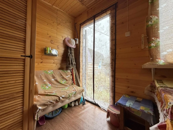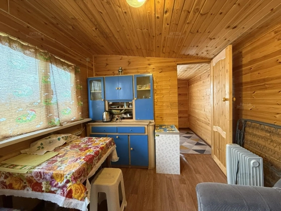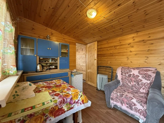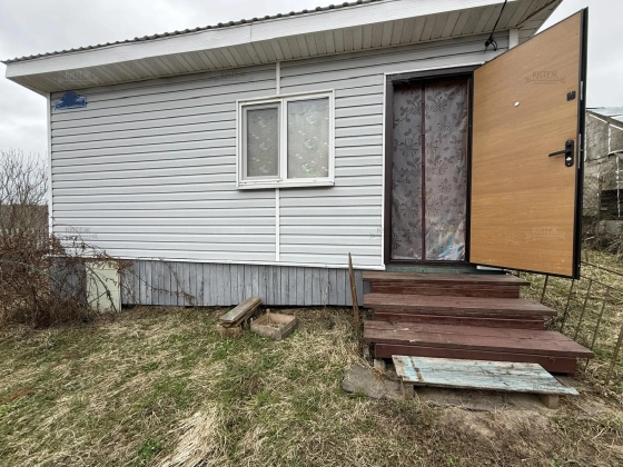 На участке расположен небольшой деревянный дачный домик площадью 22, 7 квадратных метра. Дом разделен на две комнаты - кухню с небольшим гарнитуром и комнату для отдыха. Окна ПВХ. Свет заведен в дом. Дом 2018 года постройки.