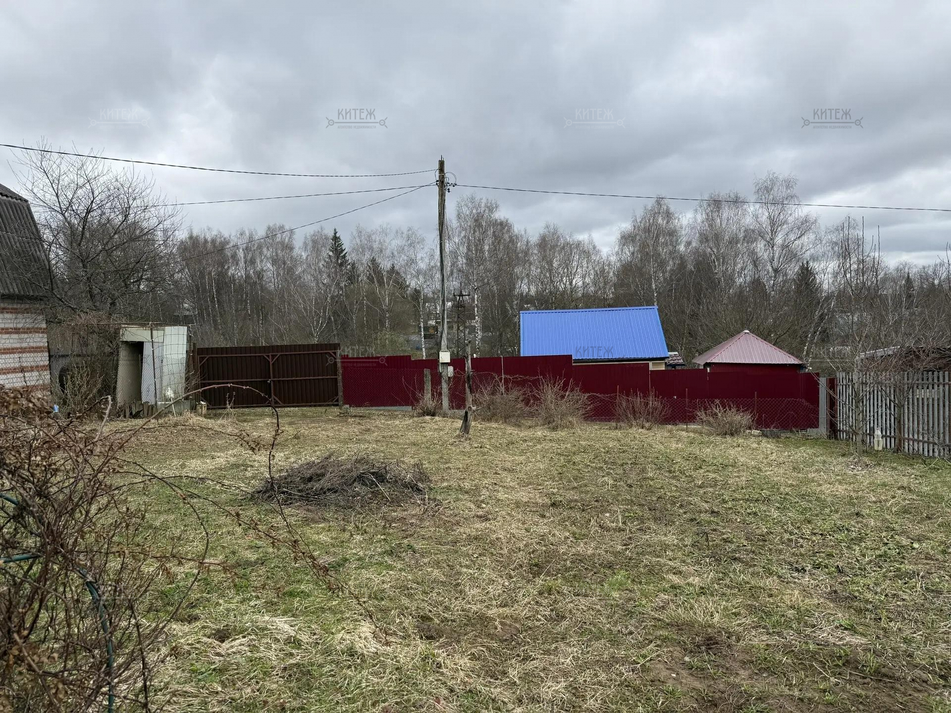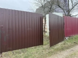 Участок огорожен сеткой рабицей, для въезда на территорию установлены распашные ворота.