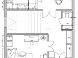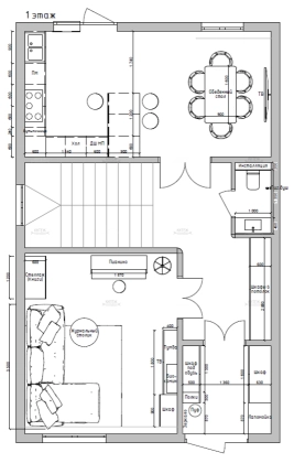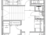 Первый этаж: прихожая 6,8 кв.м., комната 22,2 кв.м., кухня-столовая 24,3 кв.м. с выходом на террасу и задний двор, холл с местом под шкаф-купе, гостевой санузел.