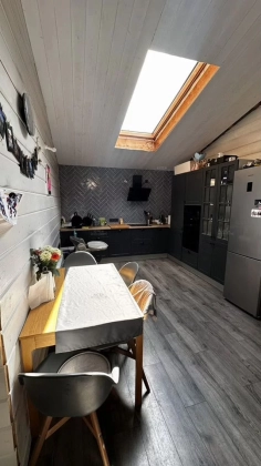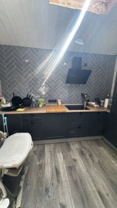 В доме 3 изолированные спальни, большой совмещенный санузел, кухня-гостиная.