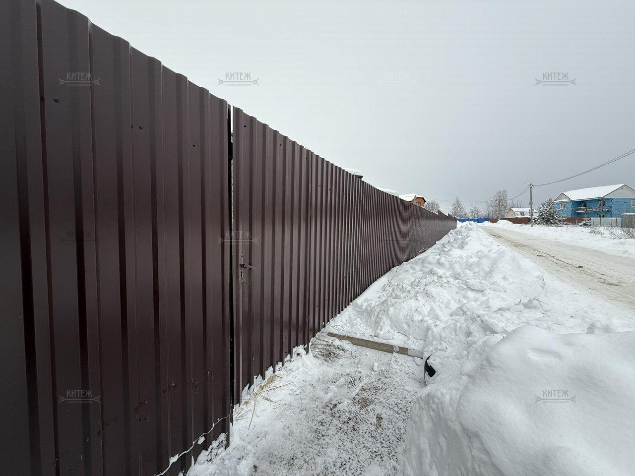 Участок обнесен забором из профлиста с раздвижными воротами. Подъезд к дому - насыпной асфальт, в зимнее время дорога чистится!