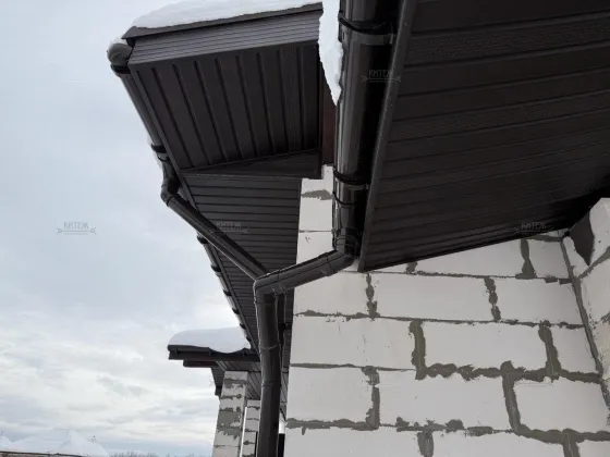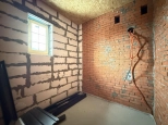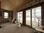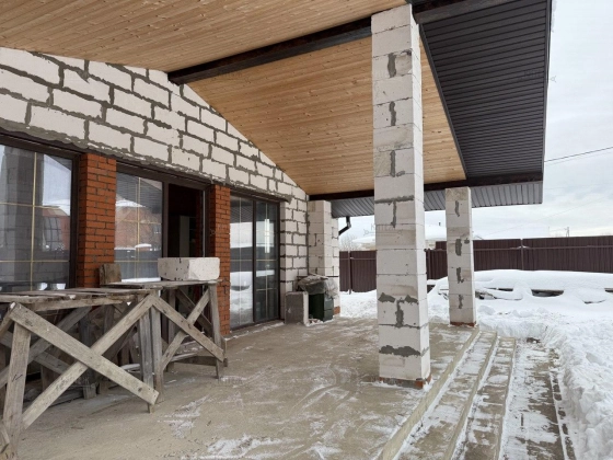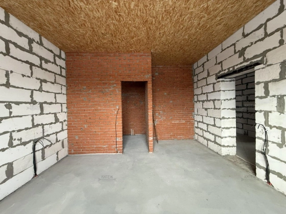 Фундамент - монолитная плита, материал наружних стен - газобетонный блок 400мм. Крыша подшита, оборудована водосточной системой. Проведено отопление, утановлены батареи, сделана разводка электрики.