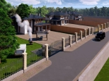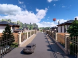 Закрытая территория со входной группой. Асфальтированные дороги. Освещенные улицы. Коммуникации под землей (электричество, газ, центральное водоснабжение).