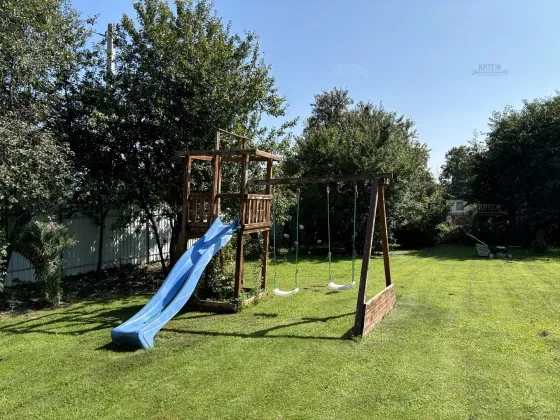 Участок 16,7 соток, в собственности. Назначение: земли населённых пунктов для индивидуальных жилых домов коттеджного типа. На участке перед домом парковочная площадка выложена плиткой, позади дома ровный ухоженный газон, деревья, детская площадка. Огорожен забором (профлист). Ворота с двух сторон. Размеры 35 х 49 м. Без уклона, ровный, правильной формы, прямоугольный. Без зон с особыми условиями использования.