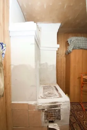 Отопление печное, в доме две печи - в каждой части (бревенчатой и кирпичной) установлена своя печь. Можно установить газовый котёл и развести отопление по дому. Радиаторы отопления уже закуплены, газ в дом заведён.