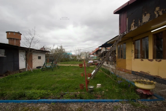 К продаваемой половине дома идёт участок 10 соток, отдельный от соседей, со входом с двух сторон. Забор (профлист) по периметру. Есть ворота для въезда автомобилей. У соседей свой отдельный участок со входом с другой стороны.