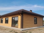 Выполнена вся черновая отделка: стяжка пола с подготовкой под теплые полы, штукатурка стен, пластиковые окна рейхау, откосы и подоконники, электроразводка, крыша металлочерепица с пароизоляцией, две кирпичные трубы вентиляции и отмостка, выполнена система ливневки.