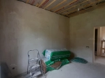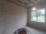 Стены отштукатурены под маяк, электрика проведена по дому заложены провода и автоматы для ворот, генератора. беседки.