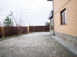 Парковка: на территории встанут две машины, в гараже одно место и за территорией на выложенной плиткой площадке встают ещё 3 машины. Парковочные места выложены плиткой.