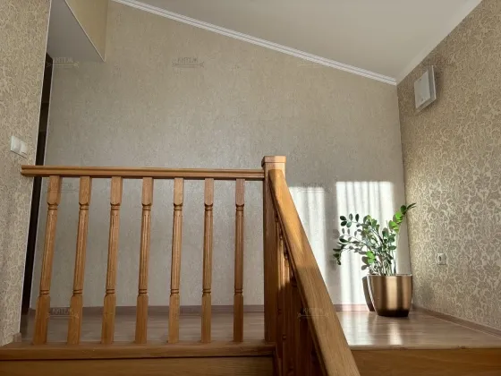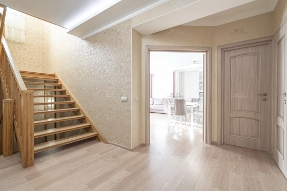 Состояние - идеальное! Абсолютно во всех помещениях сделан полный ремонт. Ничего не нужно доделывать или переделывать. В доме много света, тепла и уюта! Со вкусом подобраны цвета, материалы и мебель. Установлена дубовая лестница. Сквозные выключатели освещения. Кухонный гарнитур со встроенной техникой, сантехника в санузлах, мебель - всё как новое.