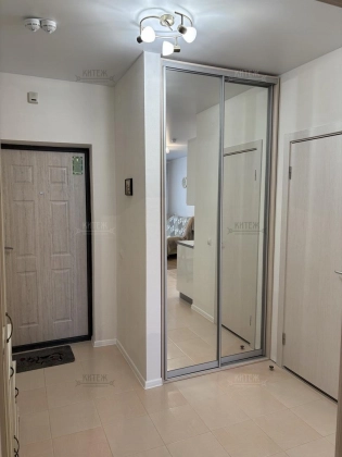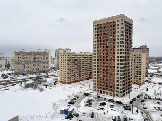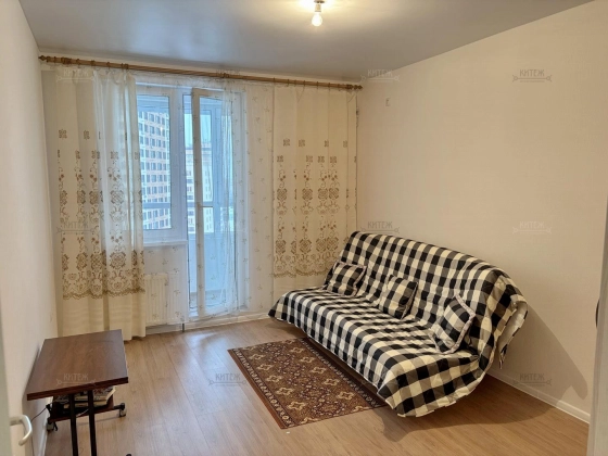 На 12 этаже сдаётся неугловая 1-комн. квартира 43 кв.м. с кухней-гостиной 18,3 кв.м. и комнатой 13,8 кв.м. Из комнаты выходит застеклённая лоджия с красивыми панорамными видами. Совмещённый санузел. Вместительная прихожая со встроенным гардеробным шкафом-купе.