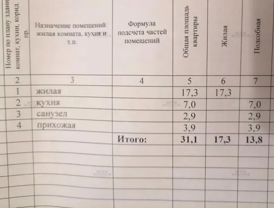 Площадь, кв.м.31.1