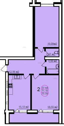 В продаже 2-комн. квартира 75,4 кв.м. с изолированными комнатами 19,1 + 18,6 кв.м. и кухней 15,1 кв.м., раздельный санузел, застеклённая лоджия 9 кв.м. Окна смотрят на разные стороны. В квартире выполнена стяжка, ввод электрики, разведено отопление.