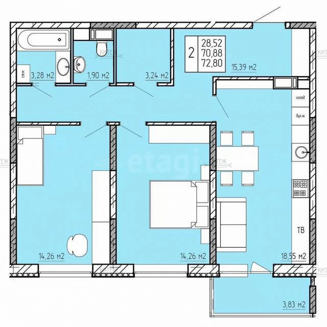 | Площадь, кв.м. | 70.88 |