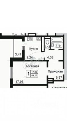 В избранное Продается 1-комн. квартира, 44,23 м²