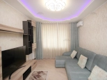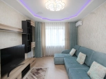 Квартира обставлена дорогой мебелью и бытовой техникой. Расскажу поподробнее о ремонте и бытовой технике: немецкая кухня "KUCHENBERG" с крашенными фасадами "белый перламутр", доводчиками Blum и столешницей из искусственного камня. Японская мойка из искусственного камня Omoikiri, смеситель и дозатор тоже фирмы Omoikiri. Техника кухонная встроенная премиальная Bosch, включая посудомойку. Холодильник инверторный фирмы Lg. Вся корпусная мебель фирмы Дятьково, диван в зале фирмы "Pushe". На полу постелена паркетная доска фирмы «Karelia». В ванне и туалете испанская плитка. Стиральная машинка фирмы "Whirlpool". В каждой комнате двухуровневые гипсокартонные потолки с подсветкой, дорогие шторы под заказ. Импортная сантехника, тропический душ фирмы "Jacob Delafon". Двери из натурального шпона фирмы "Волховец". Мебель закуплена и установлена в 2021 году,