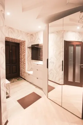 Квартира обставлена дорогой мебелью и бытовой техникой. Расскажу поподробнее о ремонте и бытовой технике: немецкая кухня "KUCHENBERG" с крашенными фасадами "белый перламутр", доводчиками Blum и столешницей из искусственного камня. Японская мойка из искусственного камня Omoikiri, смеситель и дозатор тоже фирмы Omoikiri. Техника кухонная встроенная премиальная Bosch, включая посудомойку. Холодильник инверторный фирмы Lg. Вся корпусная мебель фирмы Дятьково, диван в зале фирмы "Pushe". На полу постелена паркетная доска фирмы «Karelia». В ванне и туалете испанская плитка. Стиральная машинка фирмы "Whirlpool". В каждой комнате двухуровневые гипсокартонные потолки с подсветкой, дорогие шторы под заказ. Импортная сантехника, тропический душ фирмы "Jacob Delafon". Двери из натурального шпона фирмы "Волховец". Мебель закуплена и установлена в 2021 году,