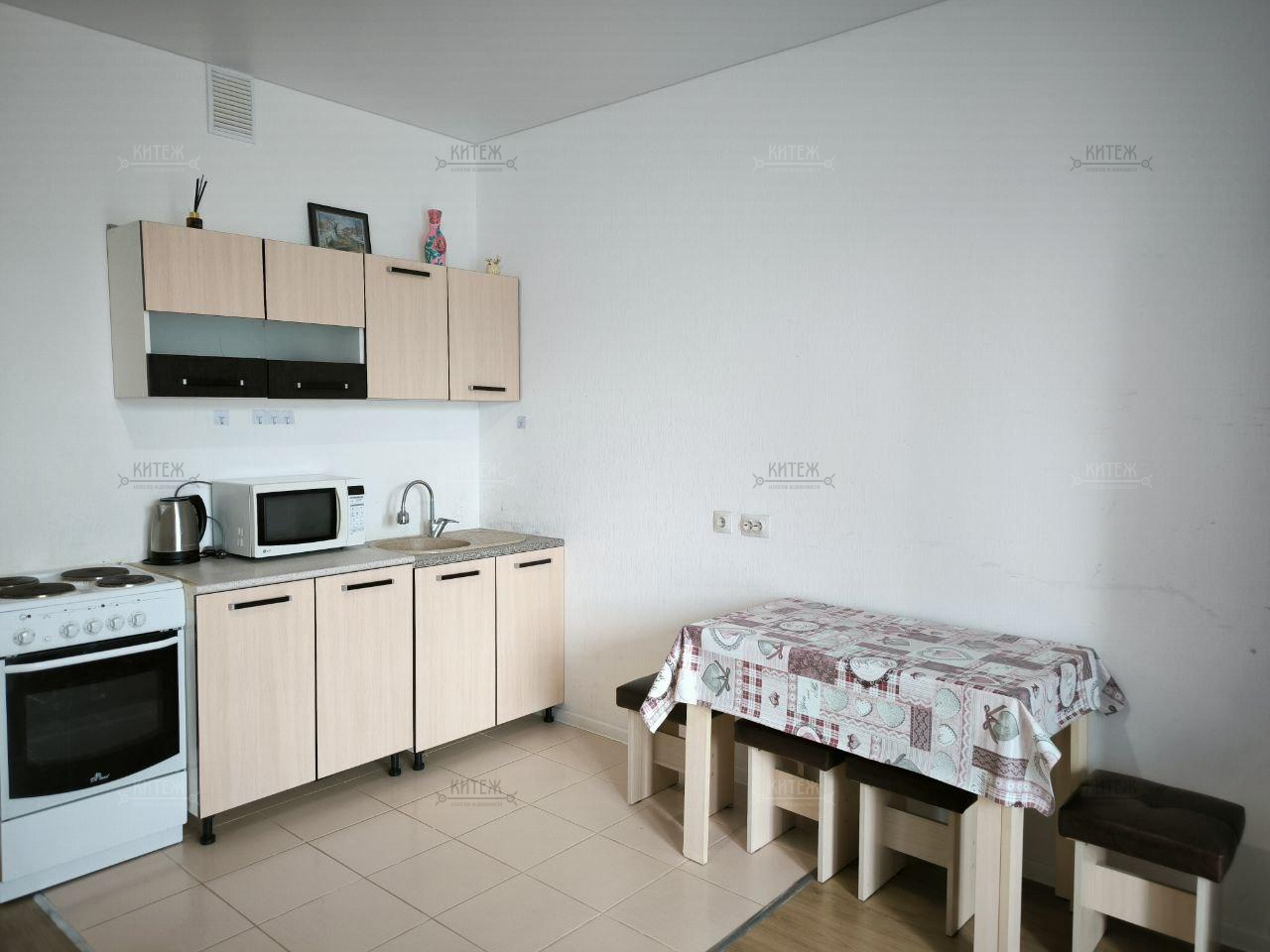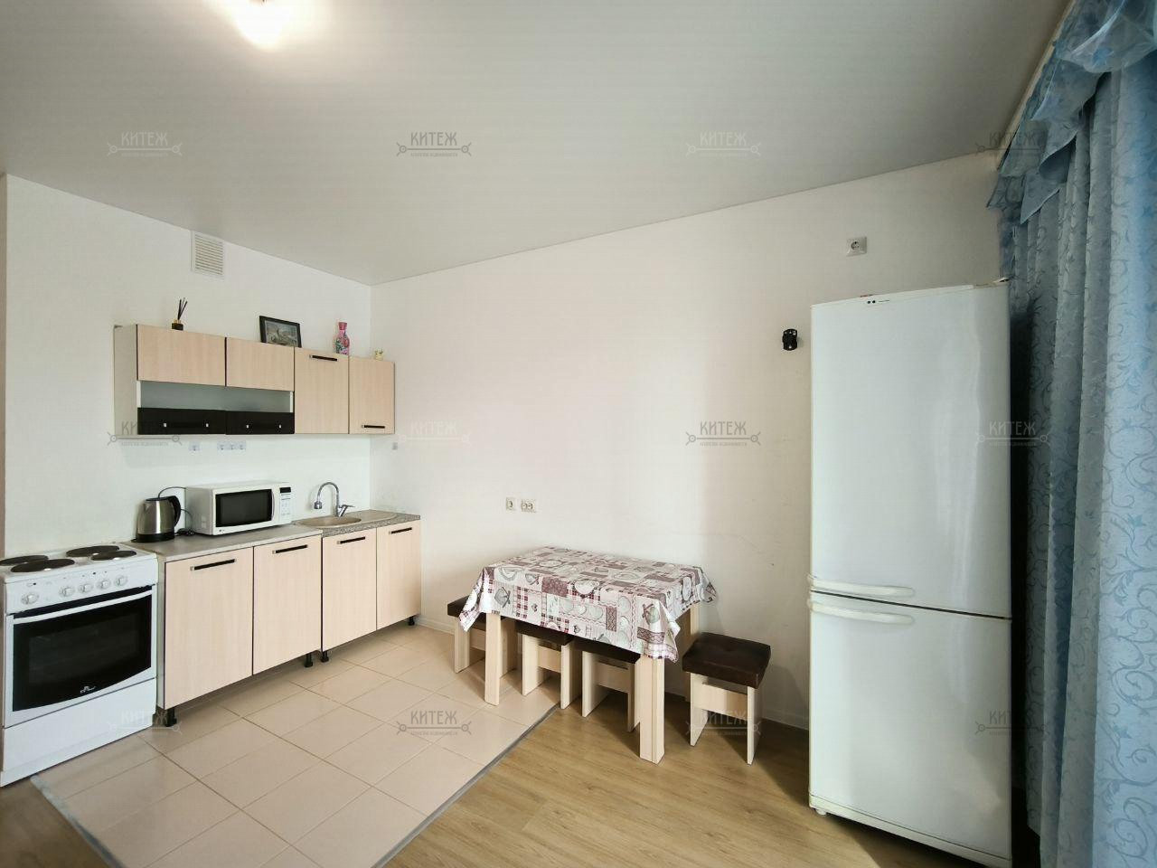 ✅ Остаются кухонный гарнитур, вытяжка, микроволновка, электрическая плита с духовкой, стиральная машина авт., холодильник, диван, прихожая, стол и стулья, не угловая.